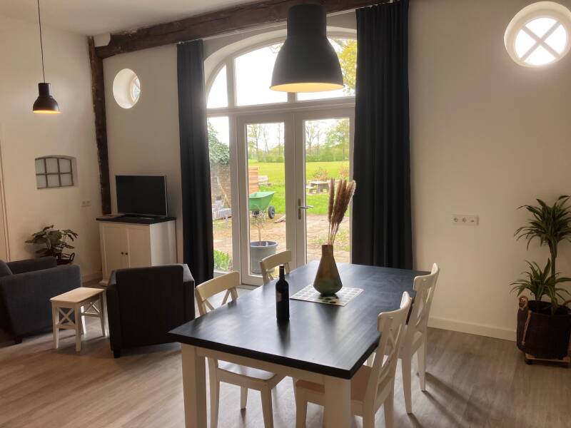 Wij hebben een appartement gebouwd in de voormalige 'deel' van onze woonboerderij. Het appartement is geschikt voor 2 a 3 personen. Er bevindt zich een groot 2-persoonsbed in de woonruimte en in een aparte ruimte staat nog een vast 1-persoonsbed. Op deze manier kunt u als vrienden ervoor kiezen om apart slapen. Komt u met een zoon/dochter/kleinkind, dan kan de het losse bed gebruikt worden als aparte slaapkamer.