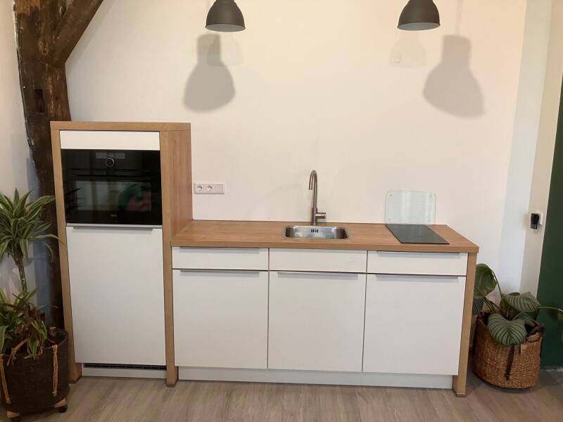 In ons appartement is alles aanwezig. Een volledig ingerichte keuken, met een koelkast, oven/magnetron en 2-pitskookplaat. Het appartement beschikt over een grote eethoek, een zithoek en een eigen badkamer. Het bed is door ons al voor u opgemaakt.